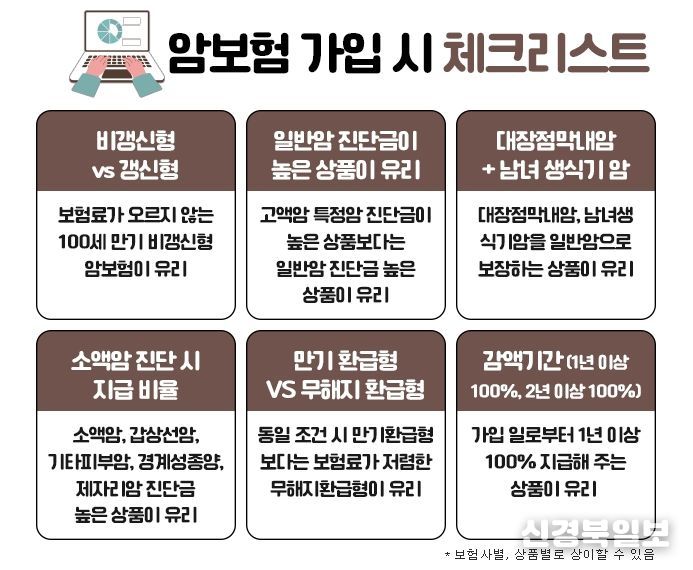 우선, 암보험을 가입하기 위해서는 갱신형 상품과 비갱신형 상품중에서 선택을 해야 한다. 갱신형은 처음 가입 시에는 보험료가 상대적으로 저렴하지만 갱신을 이어가면서 보험료가 계속 인상될 수 있고, 비갱신형은 초기 보험료는 갱신형보다 높을 수 있지만, 가입 후에 보험료인상이 없어 안정적으로 유지관리가 가능한 장점이 있다. 따라서 이러한 장단점을 고려하여 본인의 상황에 맞게 선택하는 것이 좋다.