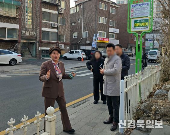 [ 신경북일보 ] 강북구의회 김명희 의장(번1·2동, 수유2·3동)은 지난 2월 20일, 번2동 오현로31길 일대 버스정류장 관련 민원 현장을 찾아 주민 불편 사항을 직접 확인했다. 이날 현장에는 강북구청 김석용 교통행정과장과 신하형 도로관리과장, 번동5단지 관리소 관계자가 함께 참석해 현황을 공유하고 개선 방향을 논의했다.