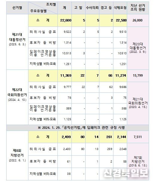 중앙선관위는 딥페이크 제작물이나 허위사실공표·비방 행위는 후보자에게 회복하기 어려운 피해를 줄 수 있고 유권자의 판단을 왜곡하여 선거결과에 영향을 미칠 수 있다면서, 깨끗한 사이버선거문화 조성을 위해 관계기관 등의 적극적인 협조를 요청했다.