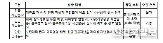 지진·핵경보 등에만 제한적으로 사용되던 ‘위급재난문자’는 지방정부의 판단에 따라 대규모 재난이나 인명 피해가 우려되는 상황에서도 사용할 수 있도록 했다.
