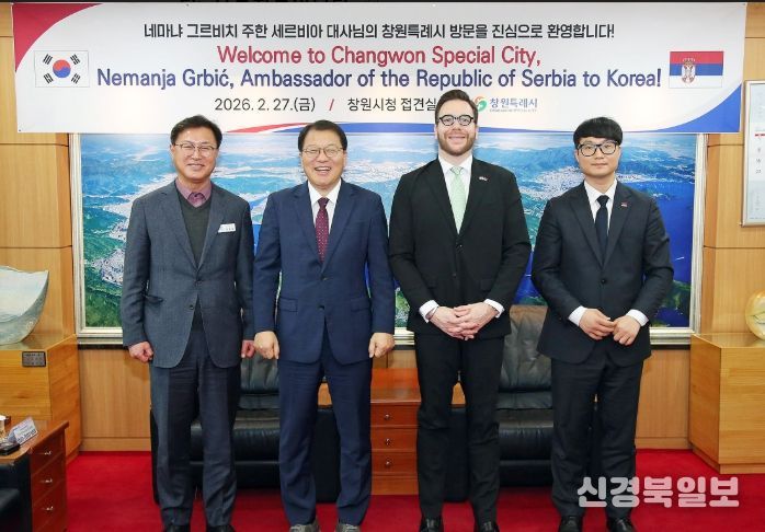 [ 신경북일보 ] 창원특례시는 27일 오전 시청 접견실에서 장금용 창원시장 권한대행이 네마냐 그르비치(Nemanja GRBIĆ) 주한 세르비아 대사를 접견하고, 양국 지방정부 간 교류·협력 방안을 논의했다고 밝혔다.
