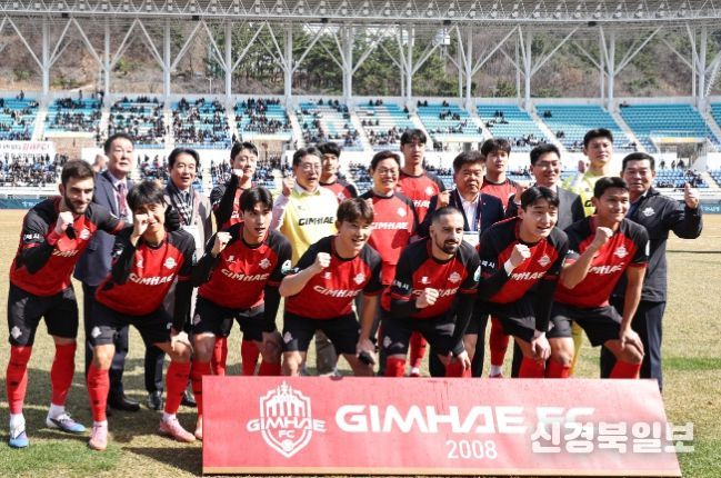 [ 신경북일보 ] 경상남도는 28일 오후 김해종합운동장에서 열린 김해FC와 안산 그리너스의 홈 개막전을 찾아 김해FC의 프로리그 첫 공식 데뷔전을 축하하고 선수단을 격려했다.