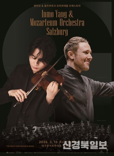 [ 신경북일보 ] 대구콘서트하우스가 2026년 명연주시리즈의 첫 공연으로 '양인모&잘츠부르크 모차르테움 오케스트라' 무대를 3월 13일 오후 7시 30분 그랜드홀에서 연다.