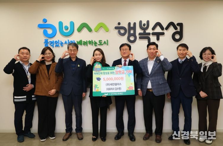 [ 신경북일보 ] ㈜세진쉴더스가 지난 26일 수성미래교육재단에 장학금 500만 원을 기부했다.