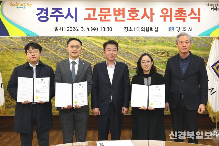 [ 신경북일보 ] 경주시는 시정 운영에 필요한 법률 자문과 소송 대응을 위해 3명의 고문변호사를 새롭게 위촉했다. 위촉식은 지난 4일 시청 대외협력실에서 진행됐다.