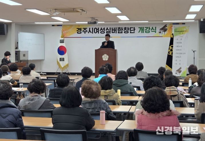 [ 신경북일보 ] 경주시여성실버합창단 가곡반이 경주문화원 강당에서 2026년 개강식을 개최하며 공식적인 활동을 시작했다. 이번 행사에는 김명순 회장과 단원 60여 명, 관계자들이 참석했다. 윤철용 경주시 시민복지국장도 자리를 함께해 어르신들의 새로운 출발을 응원했다.