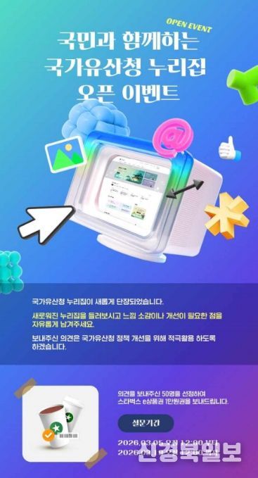 [ 신경북일보 ] 국가유산청은 국민들이 국가유산청의 정책정보를 쉽고 편리하게 이용할 수 있도록 누리집을 개편하고, 이를 알리기 위한 대국민 이벤트를 개최한다.