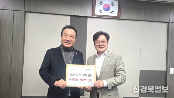 [ 신경북일보 ] 김병수 김포시장이 4일 김포시민의 간절한 염원을 담은 국회국민청원서를 들고 직접 국회를 찾았다. 김 시장은 이날 엄태영 국회 국토교통위원회 청원심사소위원장을 면담하고, ‘서울 지하철 5호선 김포·검단 연장 사업’의 신속한 예비타당성조사 통과와 절차 진행을 강력히 촉구했다.