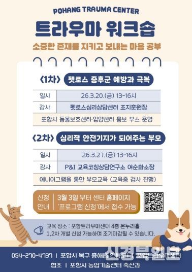 [ 신경북일보 ] 포항시 북구보건소 산하 포항트라우마센터가 지역 주민의 심리적 회복을 지원하는 맞춤형 워크숍을 20일과 27일 양일간 연다.