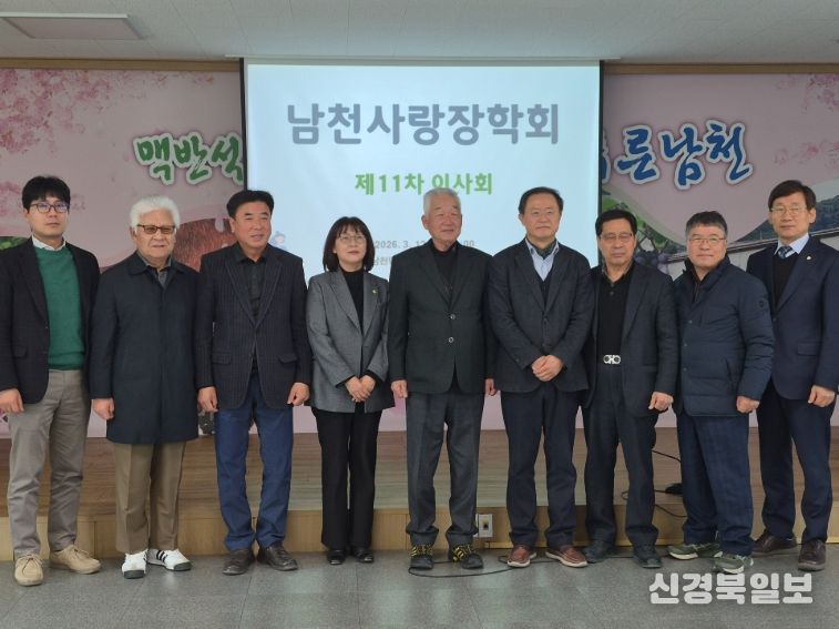 [ 신경북일보 ] 재단법인 남천사랑장학회가 12일 남천면 행정복지센터에서 임원 11명이 참석한 가운데 제11차 이사회를 열었다.