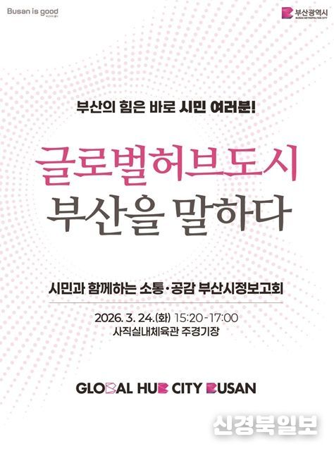 [ 신경북일보 ] 부산시는 오는 24일 오후 3시 20분 사직실내체육관 주경기장에서 시민과 지역 주요 인사 등이 참석한 가운데 '글로벌허브도시 부산을 말하다' 시정보고회를 개최한다고 밝혔다.