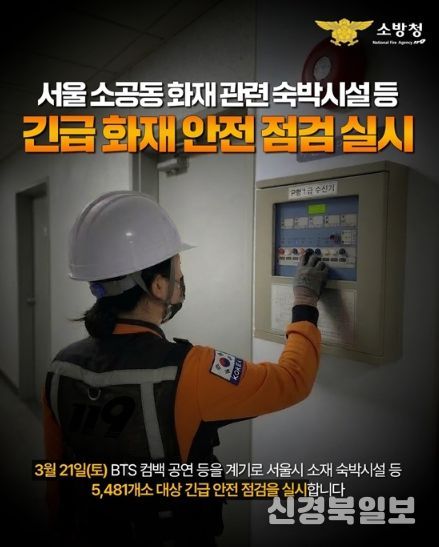 [ 신경북일보 ] 서울 소공동 화재 관련 숙박시설 등 긴급 화재 안전점검 실시