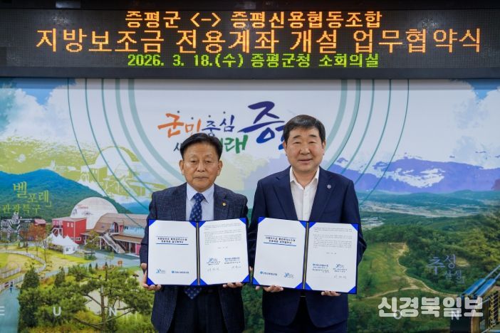 [ 신경북일보 ] 충북 증평군은 18일 군청 소회의실에서 증평신협과 지방보조금 전용계좌 개설을 위한 업무협약을 체결했다고 밝혔다.