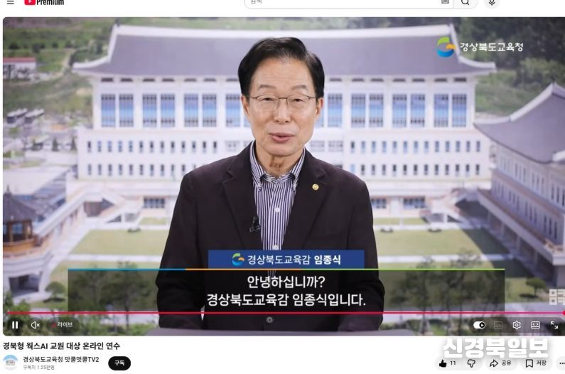 [ 신경북일보 ] 경북교육청은 18일 공식 유튜브 채널 ‘맛쿨멋쿨TV’ 생중계를 통해 도내 전 교원 대상으로 ‘경북형 웍스 AI’ 연수를 개최했다고 밝혔다.