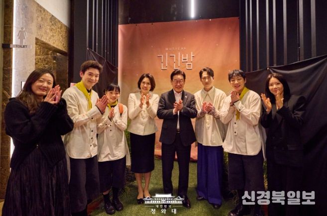 [ 신경북일보 ] 이재명 대통령과 김혜경 여사가 서울 대학로 링크아트센터드림에서 창작뮤지컬 '긴긴밤'을 관람하며 출연진과 제작진을 격려했다.