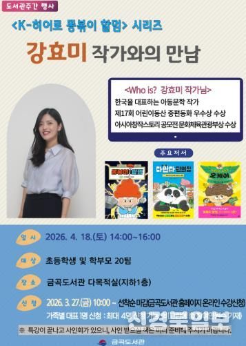 [ 신경북일보 ] 부산 북구는 제62회 도서관주간을 맞아 4월 18일 오후 2시, 금곡도서관에서 인기 동화 'K-히어로 똥볶이 할멈'의 저자 강효미 작가를 초청해 ‘작가와의 만남’을 개최한다고 밝혔다.