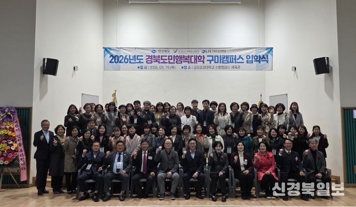[ 신경북일보 ] 구미시가 19일 국립금오공과대학교 평생교육원 실내체육관에서 제6기 도민행복대학 구미캠퍼스 명예학사과정 입학식을 열었다. 행사에는 신입생 55명과 총동창회 회원 등 70여 명이 참석했다.