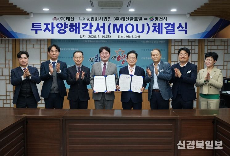 이날 시청 영상회의실에서 열린 협약식에는 최기문 영천시장과 허광옥 ㈜태산·㈜태산글로벌 대표이사 등 양사 관계자들이 참석해, 사업의 성공적 추진을 위한 협력 방안을 논의했다.