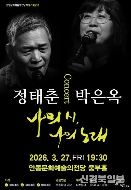 [ 신경북일보 ] 안동문화예술의전당이 정태춘과 박은옥의 콘서트 '나의 시, 나의 노래'를 마련해 시민들에게 다양한 공연 예술을 선보인다.