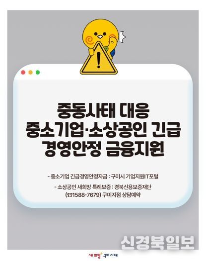 [ 신경북일보 ] 구미시는 중동 지역의 불안정한 정세로 인해 지역 내 중소기업과 소상공인이 겪는 경영난 해소를 위해 긴급 금융지원을 실시한다.