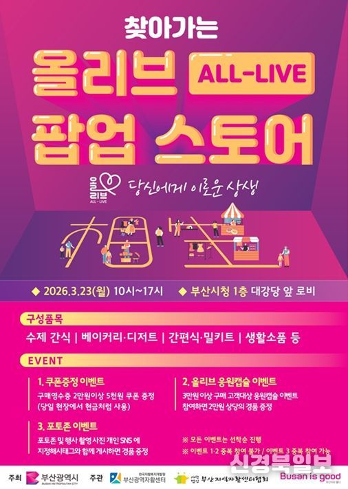 아울러 같은 날 올해 새롭게 선보이는 '찾아가는 올리브(ALL-LIVE) 팝업스토어'를 오전 10시부터 오후 5시까지 시청 1층(대강당-대회의실 앞)에서 개최한다.