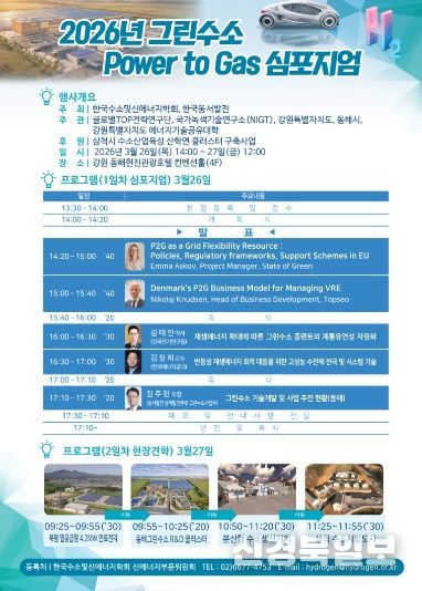 [ 신경북일보 ] 동해시가 3월 26일부터 27일까지 이틀간 현진관광호텔 및 수소산업 현장 일원에서 '제5회 그린수소 P2G(Power to Gas) 심포지엄'을 개최한다.