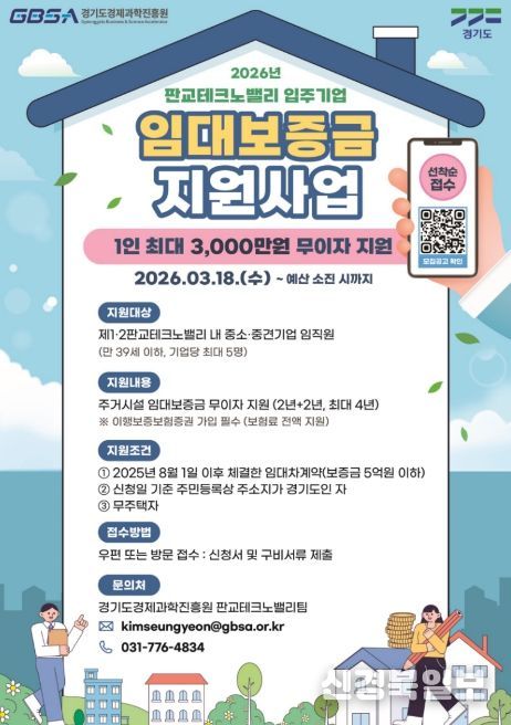 [ 신경북일보 ] 경기도와 경기도경제과학진흥원이 판교테크노밸리 청년 임직원의 주거비 부담 완화를 위해 임대보증금 최대 3천만 원을 무이자로 지원한다.