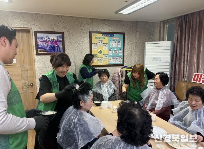 [ 신경북일보 ] 김천시청년새마을연대가 23일 율곡동 스위첸 경로당에서 어르신들을 대상으로 염색과 장수사진 촬영 봉사활동을 진행했다.