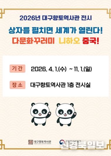 [ 신경북일보 ] 다문화 교육의 새로운 장이 대구에 열렸다. 대구향토역사관이 국립민속박물관이 주최한 ‘2026 다문화꾸러미 대여 운영’ 공모사업에 선정되면서, 지역 사회에 중국 문화를 직접 체험할 수 있는 다양한 프로그램이 마련됐다. 대구 시민들은 중국의 전통 의식주와 놀이 등 다양한 민속 자료를 실제로 접할 수 있는 기회를 얻게 되었다.