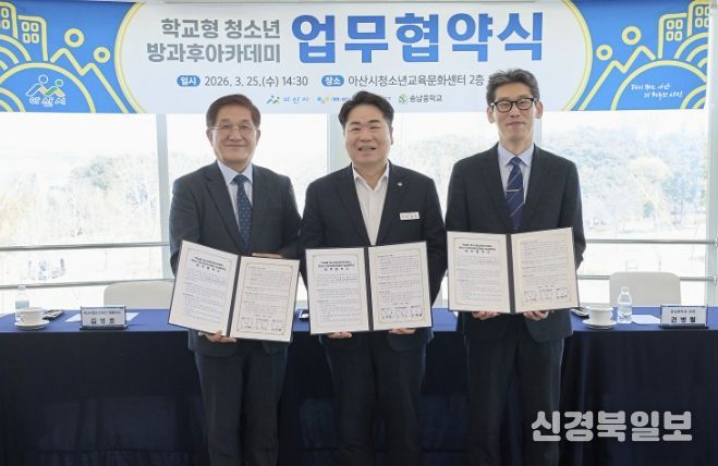 [ 신경북일보 ] 아산시는 25일 (재)아산시청소년재단, 송남중학교와 함께 ‘학교형 청소년방과후아카데미’의 원활한 운영을 위한 업무협약(MOU)을 체결했다.