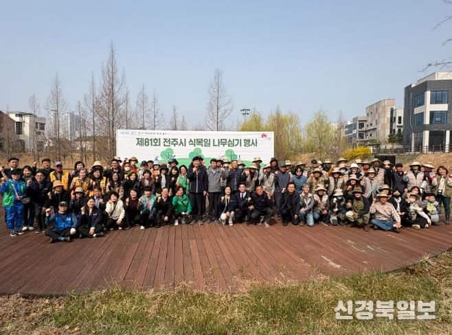 전주시는 27일 혁신동 만성1호근린공원에서 윤동욱 전주시장 권한대행 부시장과 전주시의회 의원, 성현유치원 교사와 원아, 혁신동 주민 등 160여 명이 참여한 가운데 ‘제81회 식목일 나무심기 행사’를 개최했다.