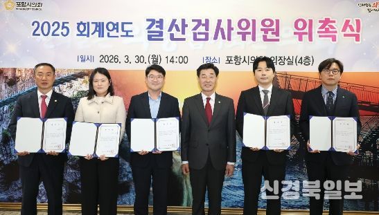 [ 신경북일보 ] 포항시의회는 30일 오후 의장실에서 김형철·김상백 의원, 고가영·김광재·박민호·조영대 세무사를 2025회계연도 결산검사위원으로 위촉했다.
