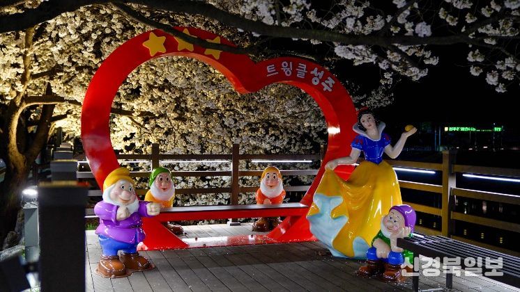성주군 관광과장은 “벚꽃이 휘날리는 성밖숲의 밤은 그 자체로 하나의 예술 작품”이라며, 산책로에 마련된 백설공주 테마 공간과 달‧별 조형물에서 성주만의 특별한 추억을 남기길 바란다고 밝혔다.