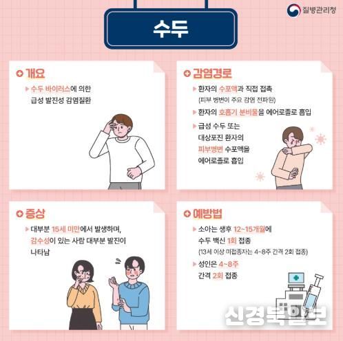 [ 신경북일보 ] 대구 북구보건소가 4월 들어 기온이 오르고 야외 활동이 늘어남에 따라 수두와 유행성이하선염에 대한 시민들의 경계가 필요하다고 밝혔다.