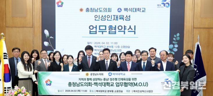 [ 신경북일보 ] 충남도의회가 백석대학교와 손을 잡고 지역사회 미래를 책임질 ‘인성 인재’ 양성을 위한 제도적 기반 마련에 나선다.