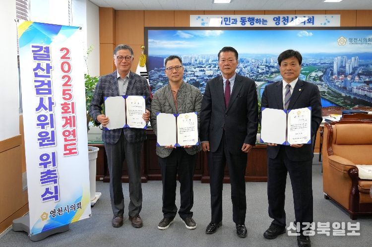 [ 신경북일보 ] 영천시의회는 3일 김상호 의원(대표 위원), 권혁희 세무사, 이종규 전 영천시 국장 3명을 2025회계연도 결산검사위원으로 위촉했다.