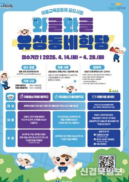 [ 신경북일보 ] 대전 유성구는 ‘2026 마을교육공동체 와글와글 유성동네학당’ 공모사업을 추진한다.