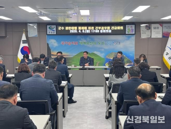 [ 신경북일보 ] 고성군은 4월 6일 이상근 고성군수가 제9회 전국동시지방선거 예비후보자로 등록함에 따라 '지방자치법' 제124조에 근거하여 군수 권한대행 체제로 전환하고, 당일 17시 군청 중회의실에서 긴급 간부공무원 회의를 개최했다.