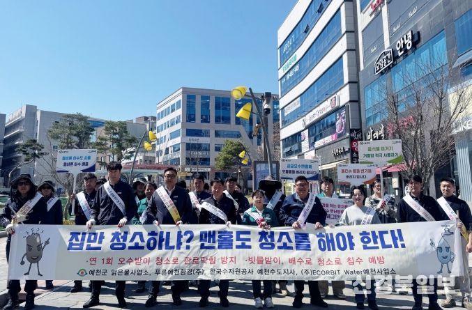 [ 신경북일보 ] 예천군 맑은물사업소는 8일 오후 호명읍 경북도청신도시 일원에서 생활하수의 올바른 배출을 알리고 빗물받이 환경 개선을 위한 현장 홍보 및 빗물받이 청소 캠페인을 진행했다.