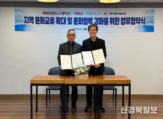 이날 협약식에는 이승훈 영덕문화관광재단 상임이사와 김준성 거제시문화예술재단 상임이사를 비롯한 양 기관 관계자들이 참석해 협력 방안과 향후 추진 방향을 공유했다.