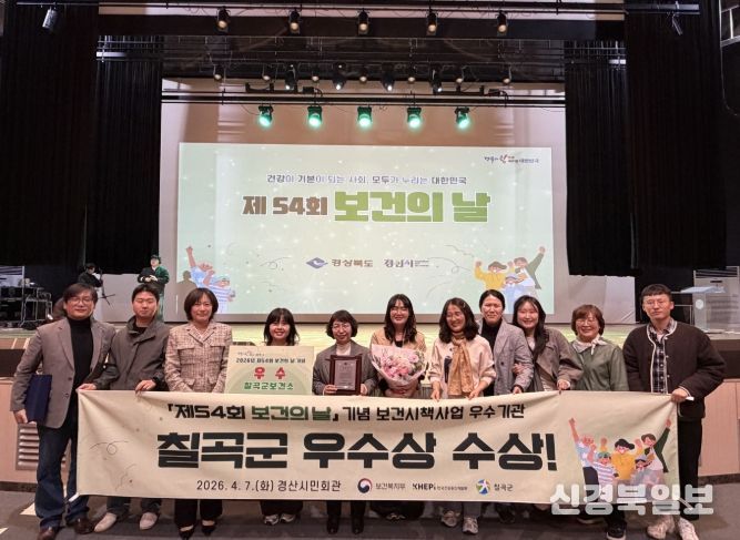 [ 신경북일보 ] 칠곡군은 지난 4월 7일 경산시민회관 대강당에서 열린 경상북도 주최 "제54회 보건의 날”기념행사에서‘우수상'을 수상했다. 이번 수상으로 2023년부터 올해까지 4년 연속 수상하는 영예를 안았다.
