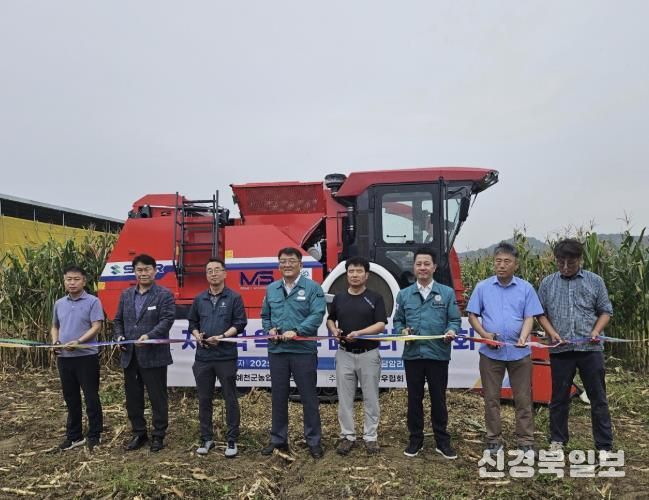 [ 신경북일보 ] 예천군은 지난 9일 호명읍 담암리 옥수수 재배포장(2,734㎡)에서 축산농가 자급사료 생산 확대와 조사료 공급 활성화를 위해 자주식 옥수수 베일러 시연회를 개최하고 장기임대 운영을 시작했다.