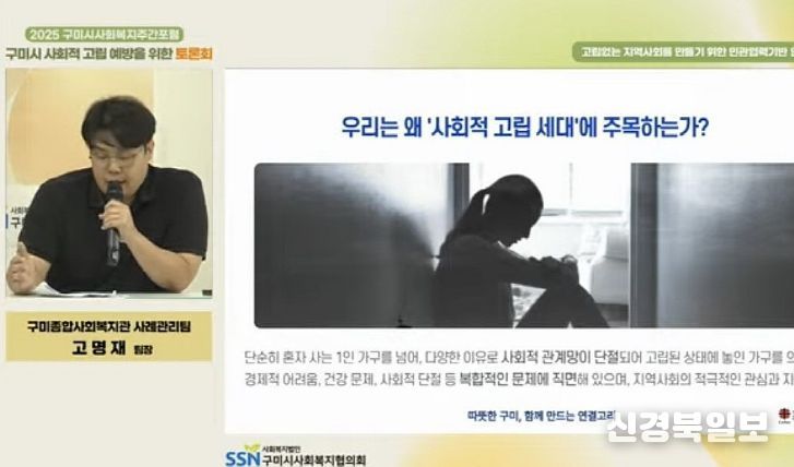 [ 신경북일보 ] 구미시는 지난 10일 새마을테마공원 연수관 회의실에서 사회복지 분야 종사자 80여 명이 참석한 가운데 사회복지주간을 맞아 '사회적 고립 예방을 위한 토론회'를 열었다.