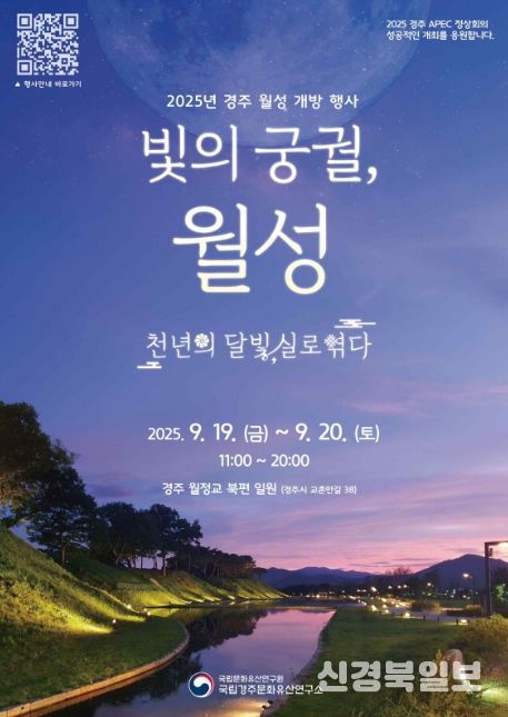 [ 신경북일보 ] 국가유산청 국립문화유산연구원 국립경주문화유산연구소는 9월 19일 오전 11시부터 20일 오후 8시까지 경주 월정교 북편 일원에서 ‘신라 왕궁 월성’을 주제로 다양한 체험과 공연 관람, 월성 야경을 감상하는 '빛의 궁궐, 월성'을 개최한다.