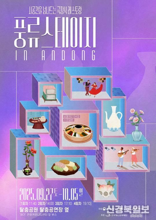 [ 신경북일보 ] 안동시와 한국정신문화재단은 대한민국 문화도시 조성사업의 일환으로 '풍류 스테이지 in Andong' 극장식 레스토랑을 오는 9월 27일부터 10월 5일까지 안동국제탈춤페스티벌 행사장에서 선보인다.