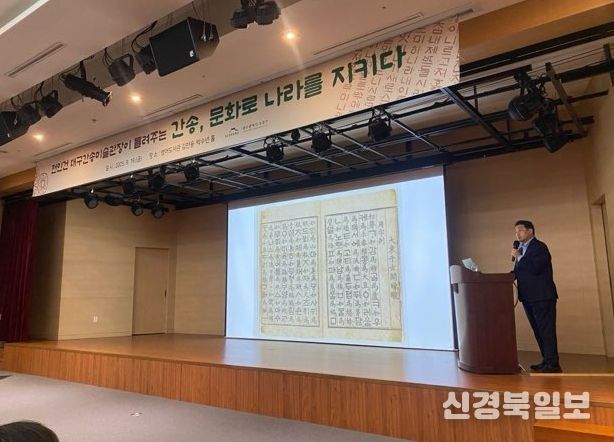 [ 신경북일보 ] 대구 수성구는 지난 19일 전인건 대구간송미술관장을 초청해 범어도서관 김만용·박수년홀에서 직원들을 대상으로 ‘간송, 문화로 나라를 지키다’라는 주제로 특별 교육을 진행했다.
