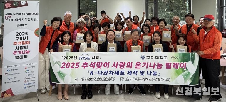 [ 신경북일보 ] 다가오는 추석을 맞아 구미시 자원봉사자들이 전통 다과를 직접 만들어 다문화 취약계층에 따뜻한 마음을 전했다. 구미시종합자원봉사센터(센터장 하준호)가 주관한 ‘사랑의 온기나눔 릴레이’봉사활동이 지난 23일 구미먹거리통합지원센터 공유주방에서 열렸다.