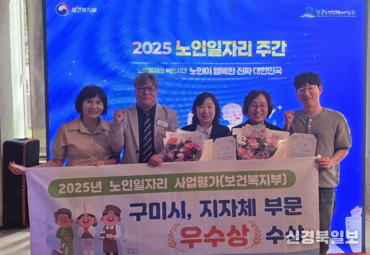 [ 신경북일보 ] 구미시는 지난 22일 웨스틴 조선호텔에서 열린 보건복지부 주최 노인일자리 주간 기념식에서 ‘2025년 노인일자리 및 사회활동 지원사업 종합평가’ 기초지자체 부문‘우수상’을 수상했다.