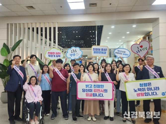 [ 신경북일보 ] 김천시 열린민원과는 지난 9월 24일 시청 1층 민원실 앞 북카페에서 직원 30여 명이 참석한 가운데 친절·청렴 실천 교육 및 캠페인을 진행했다.