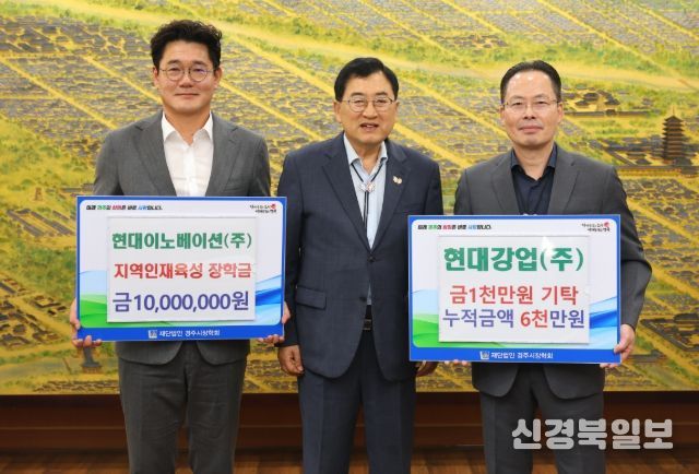 주낙영 경주시장(경주시장학회 이사장)은 “자라나는 학생들과 지역의 어려운 이웃을 위해 소중한 나눔을 실천해 준 현대강업과 현대이노베이션에 깊이 감사드린다”며 “기탁된 장학금은 가정 형편이 어려운 학생들을 위해 뜻깊게 사용하겠다”고 말했다.